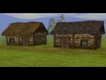 V1.30 A collection of rustic houses with thatch or shingle roofs and stone or earth walls. Each mode...