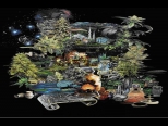 A small collection of huts in a dense jungle environment near a small lake and waterfalls. Both SoU ...