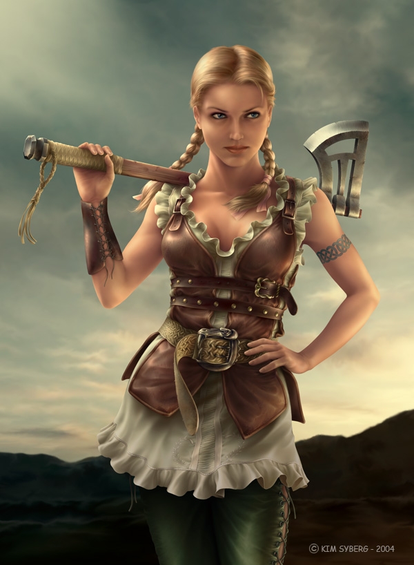 I do agree that her arms look a little too small to swing the axe with authority, but maybe that's a Belt of Storm Giant Strength that she's wearing...