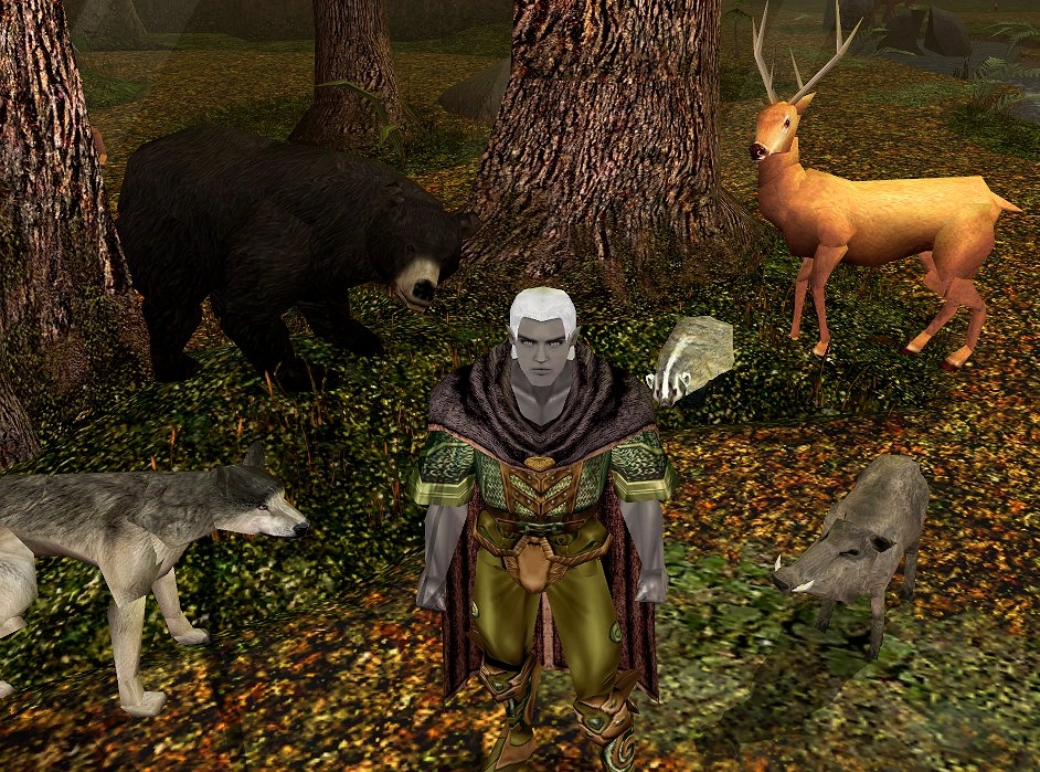 A beautiful picture with Zhandigal rounded of wild wood animals (included his wolf Nott) at the Druid Grove.