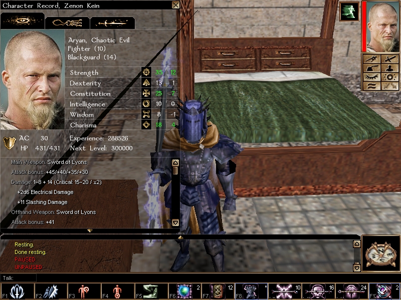 Fighter(10) Blackguard(14) after finishing the best modules ever: Blackguard series by Steve B (Zenon is really packed up, everything u need, specialized in two bladed sword) As always, check the bags 4items. Lore is covered. Enjoy