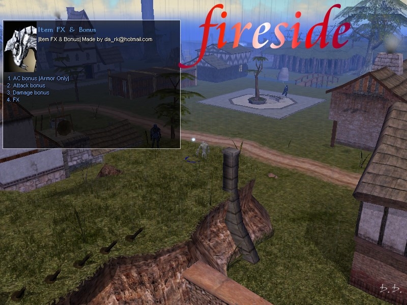 | Title | Fireside Item FX&Bonus NPC | | Author | deltadark | | Submitted / Updated | 06-05-2004 / 06-05-2004 | | Category | Other | | Challenge Rating | Various | | NPC | Yes | | Scripts Included? | Yes | | Dialog Included? | Yes | | Gender | Other | | Size | Small | | Description | | This NPC will mod any weapon you have. It can add FX, add AC bonus, Dammage bonus, and attack bonus |  |