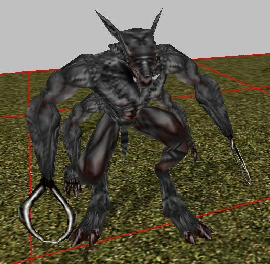 Deus... you need to read up your D&D monsters... the Balor is a different Tanar'ri, and is depicted rather well in NWN. the Glabrezu is a lesser Tanar'ri, and this model is an okay version of it. im looking at my 3.5e MM right now, and the picture for the Glabrezu and the model are a little off, especially on the claws, but this model is acceptable for the game :) As for the colorings... this is taken directly from the Monster manual. "Glabrezu have penetrating violet eyes, and thier skin color ranges from deep russet to pitch black."