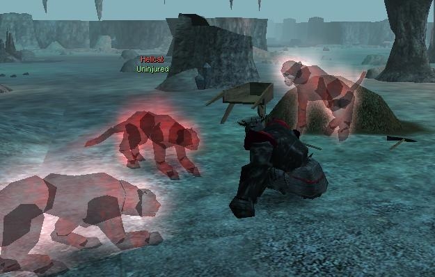This creature has effects that will make it appear glowing and will be invisible during daytime and when light is cast upon it. When it is nightime or if darkness is cast on it, it's glowing outline becomes visible. In this updated version: When the Hellcat successfully grapples a PC the PC's movement speed will be temporarily decreased, and the Hellcat will rake the PC with its claws for additional damage. This is the closest I was able to come up with to real 3rd Ed. grapple considering the current NWN limitations. All in all it make the Hellcat an even more vicious adversary