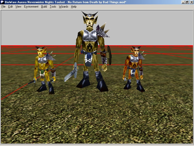 This is a reskinning and scaling of the goblin chief. The scale is set to 1.7 and I have included an erf that you can import into a module that matches the 3rd Ed stats. There is a slight difference in the creatures CR. It is 1/3 and 3rd Ed has it at 1/2. If someone would like to add a script that will make the Hobgoblin attack elves 1st please do and drop me an e-mail. That is something from the 3rd Ed that I was not able to add in myself. Enjoy.
