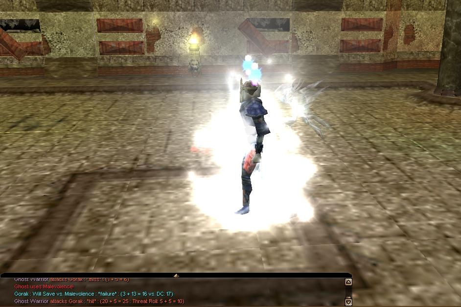 This ghost will use malevolence upon PCs. What is malevolence, you ask? It's what 3rd Edition calls possession. Yes, that's right! This ghost can possess a PC complete with pretty visual effects. The ghost will appear to leap inside the PCs body and dominate him. After a given duration the ghost will leave the body and re-continue combat. Occassionally this ghost will also use Frightening Moan (a fearing scream attack). Of course, I have include Will-Saves against all this per 3rd Edition rules. This ghost is literally not for the weak-minded! See the enclosed test module, the readme, and the erf notes!