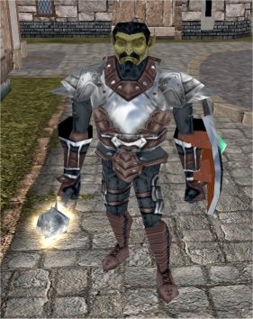 Mordok is a character from a Freeport Pnp campaign. He is a 14 level cleric with some custom equipment. He will tell you a brief history of his exploits if asked. I use him as a wandering NPC to add color to a city.
