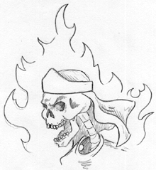 Blazing bones are an extremely rare type of undead, created when magic goes awry. These unfortunate souls are the result of a poorly prepared contingency spell by a wizard or cleric, who is killed by fire. This twisted magic keeps the victim in a state of undeath, forever tormented by the fire that killed it, and hopelessly insane. The only hope they have for momentary relief of this pain is to hurl flame at other creatures, forcing these beings to become fiery killers.