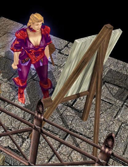 Title Velisa Author Eric Poling Submitted / Updated 07-27-2002 / 08-09-2002 Category Humanoid Class2 Other / 01 Class1 Bard / 01 Level1 01 Level2 01 Race Human NPC Yes Scripts Included? No Level3 01 Dialog Included? Yes Type 2 Gender Female Description This is my second 'flavor' NPC. Velisa is an artist, and will chat to those who stop and initiate a conversation about art. Just give her an easel and birdcage, and she will be happy. Files