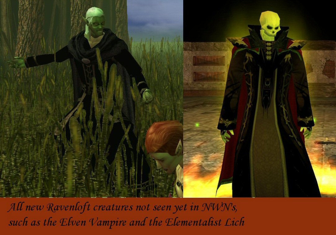 All new Ravenloft creatures not yet seen in NWN's, such as the Elven Vampire and the Elementalist Lich.
