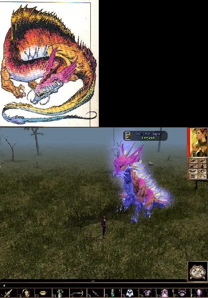 These two haks contain two varieties of cloud dragon. The models are the same but the skins are different. One was skinned by myself while the other was skinned by palafoxx. Both are intended to match the descriptions given for them in both the first edition Monster Manual 2 and the second edition Monster Manual. They also include portraits from the second edition Monster Manual. Props to palafoxx for the excellent skin work without which these could not have been completed and props to the CCP for wanting to see such creatures added to NWN.