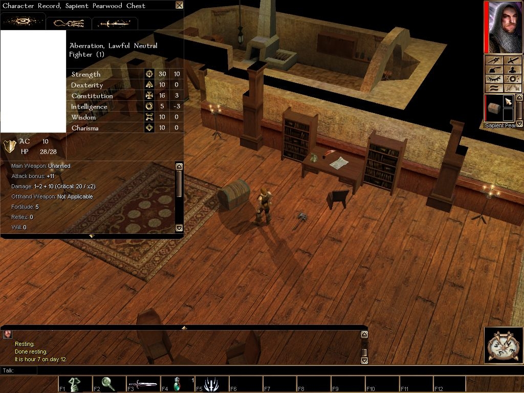 Well... it's a chest. It's strong and not too bright. Hey I'll post an image of the character sheet. I really didn't pay too much attention to the stats. I specifically made it strong to carry lots of stuff and kinda dumb so it wouldn't open doors or bash chests and the like. I'll post the image tonight (New Zealand time). ;) _________________________ Can't sleep, clowns will eat me!