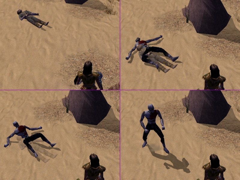 Nice. Looks a lot smooter than Bioware's "random zombie teleporting in on top of corpse". _________________________ I'm a NWN1 Builder and a NWN2 DM for Jewel of Calimshan PW, who are just out of beta. Link