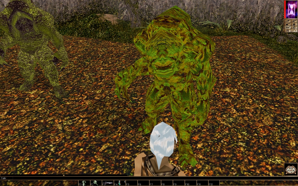 Shambling Mounds appear to be heaps of rotting vegetation, but they are actually an intelligent form of carnivorous plant-life with a roughly humanoid shape and a brain-like control center in the "chest". Enrobed in a sticky slime, most physical (and elemental) attacks are only nominally effective against these verdant horrors...
