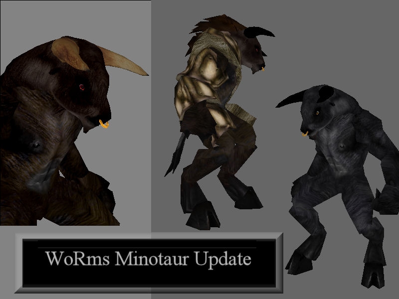 LoW I really like the look of the new minotaurs but I have already made a few changes myself I textured the tails to match the body color, and modified a texture so that they all had the brown horns as I didn't care much for the black horns. Beautiful work thou much appreciated.If you ever want anything I have modded of yours just let me know and I will surely send copies your way. Thanks again. _________________________ [Creature Compilation] [The Q Castle Project]