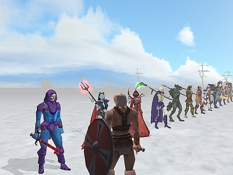 The character designs are a mixture of old and new series themes. I came up with the following basic ground rules for creating my MOTU characters for neverwinter nights, to give some basic structure to it all. All characters are level 20 except King Hiss, Hordak, Skeletor, and Shokoti, who are level 40. This is to reflect the powerful nature of those characters as the supreme evils of the classic Masters of the Universe setting. The natural exception is the Sorceress, who is also level 40 since she is the supreme good counterpart to their supreme evil, and Zodac, who is the supreme neutral counterpart to all of them. The Horde Trooper is level 15, since those are the weakest warriors. He-Man is level 20 so that if you play as him, there is room to grow in your experience before being able to take on the big bads, such as Hordak. Since He-Man begins at level 20, I also made She-Ra at that level as well. Rulers, such as Queen Angella, are level 30, since they have more experience than the more common warriors, yet are not as powerful as the supreme characters. That covers all of the level ranges. Also: all of the characters come with weapons and accessories, including more practical items as well. Skeletor's Dark Sword of Power can be changed for his Havok Staff if so desired. The Dark Sword of Power, the Power Sword, and She-Ra's Sword of the Protector are god-level weapons and EXTREMELY powerful indeed. Skeletor's appearance overwrites the Nwn Gypsy Chief's appearance... but, you won't miss the Gypsy Chief. All factions are currently set to Defender; adjust as is necessary.