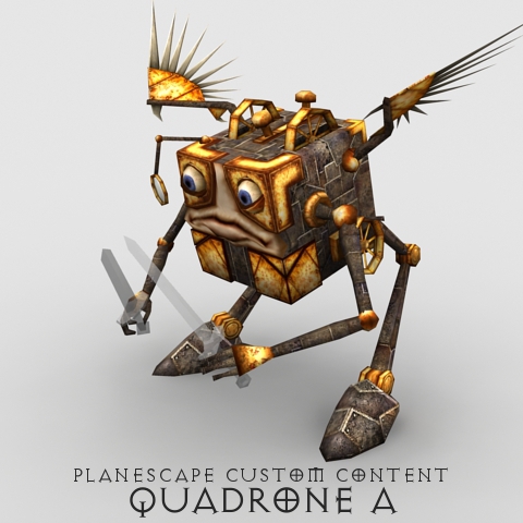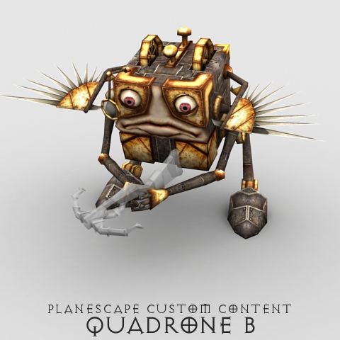 Title Planescape Custom Content: Quadrone Author Uncager Submitted / Updated 01-31-2012 / 10-31-2012 Category Outsider (Lawful) Race Other Gender Other Size Medium Description A more advanced and refined intelligence (as compared to the tridrone), quadrones are the elite of Mechanus labor forces. Often, they're the ones who order most of the lower modrons into action (in general maintenance situations and the like), as they have the ability to observe, plan, react to the unexpected, and act to remedy situations.