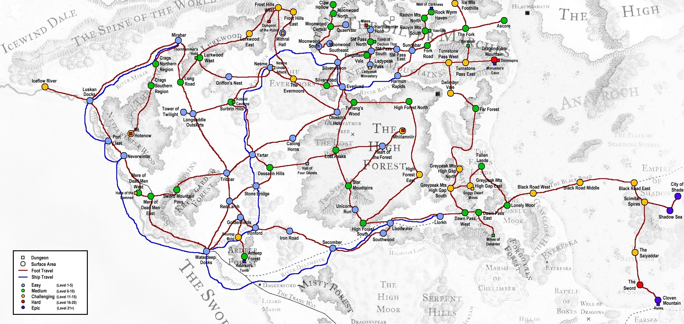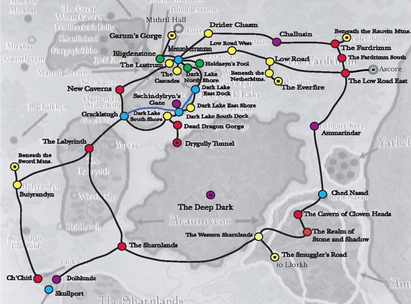 Then if you are really up for a challenge, there is the Underdark. The great Drow city of Menzoberranzan lies deep under the surface of Faerun. Ah, the Drow, where your closest friend may be your biggest enemy. Where sisters slay sisters and males know their place. Miles and miles of underground tunnels, caverns, and cities are yours to explore and control. Some Drow never see the light of day. And mostly, they prefer it that way.