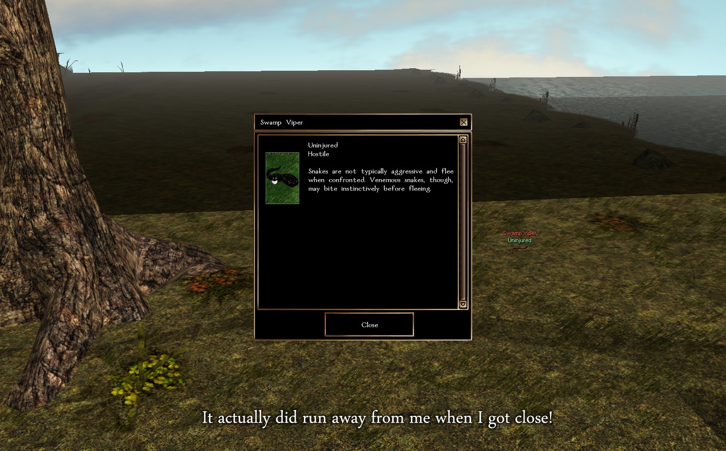 b. If the player was in 'lethal' mode, you are killed, and your character is considered permanently dead. A corpse is spawned with all your equipment inside it, which is fully lootable. Deaths this way require a screenshot of events to be taken preemptively (in case an OOC dispute arises), and a strong in-character motivation.