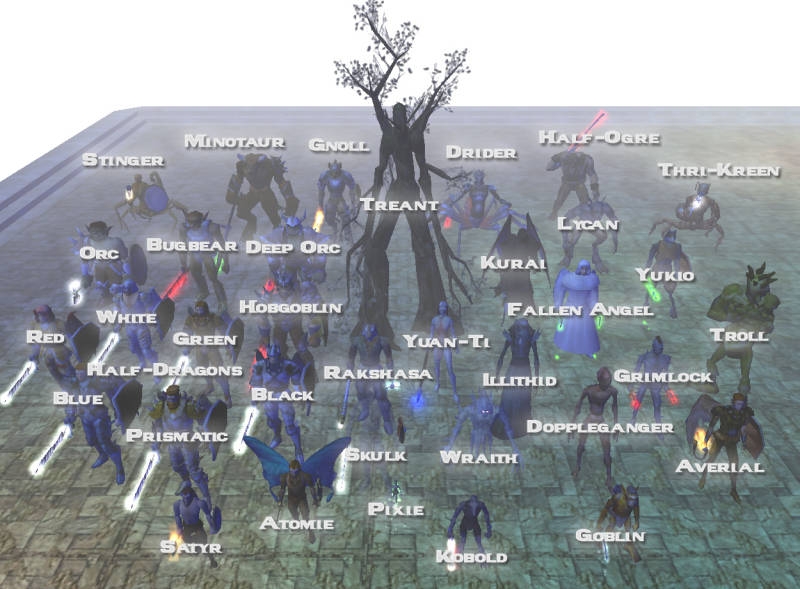 We also feature a "true" subrace system, with stackable stat bonuses, feats, appearances, skills, immunities, and more, over 110 in total including large subraces! Play, a yuan ti, a gnoll, a half-ogre, or a pixie! We also feature secret, ultrarare, and beyond ultrarare subraces, such as the Illithid, Treant, or Half-Fiend! Dart in the shadows as a Skulk or tremble the ground with your steps as a Maelephant!