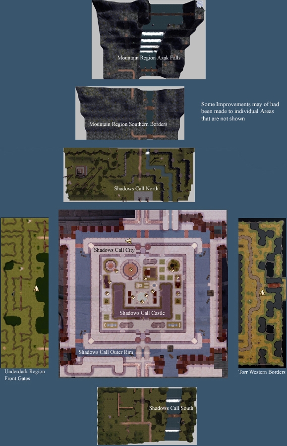 2. Areas should make sense, be interesting and have purpose, line up correctly. Mountains will be up North, Shadows Call River going into a sea to the South & Desert to the Farther South. Underdark to the West & Forests to the East and other Types of cities going around. Faction HQ throughout.