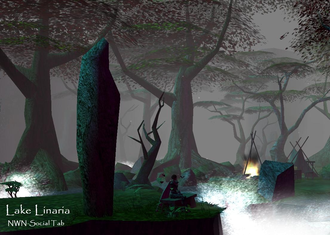 'The most stunning visual world I have ever seen, Bioware should learn from Mercede.' Myscha the sled dog PC game designer Unreal/Unreal Tournament/realMYST Lake Linaria is a world that has run under the Social tab since October of 2002. It is well known for its stunning visual design created by Mercede Dominici. Although mostly a small community of mature players interested in socializing, the server does offer many end gamer style encounter areas for the MMP gamer veteran. In addition to this, the server runs monthly events tailored towards the long-standing regulars and new visitors that progress the non faerun unique mythology of the module author. The world is quite expansive and represents over 400 hours of work from Sept 2002 through April 2003. Its primary emphasis is to provide players a place to meet friends and relax and socialize paired with stunning natural and architectural beauty.