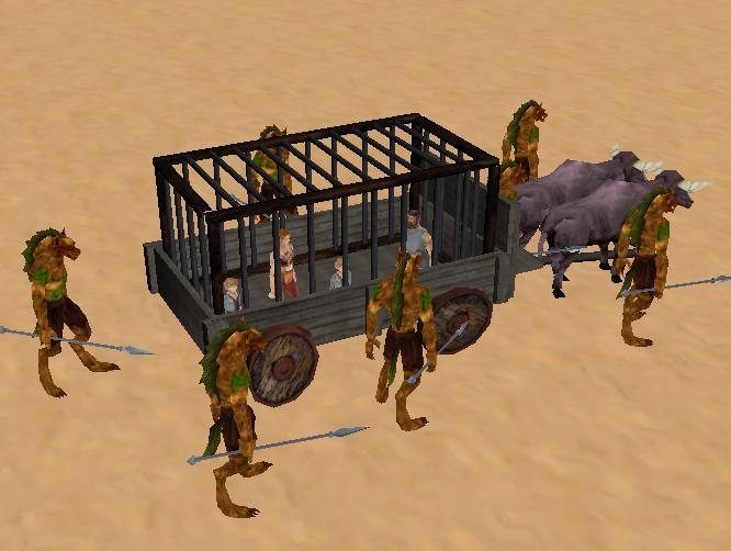 The cart is from our hakpak. What you are seeing is the Gnoll invasion of the Badlands. The citizens of Nordock are trying to get to this new area to save the people taken prisoner. This is part of our new 200 area expansion and hakpak scheduled for rollout this weekend.