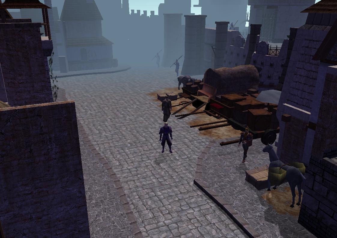 "Wow." That was my first thought upon completing the in-game character creation and entering the actual part of the module. The setting is well designed and the custom background music just really adds a feeling of "new" to NWN rather than the drabness that the original BGM seems to evoke now. The next thing to grab my attention was the customization of your character's outward appearance. As mentioned in a previous comment, there is a tailor shop that allows you to create a look for your character that can set them apart from the other characters in the mod. It is a major help to allow you to fit your character's clothing to the character rather than having your character fit the persona of the clothing.