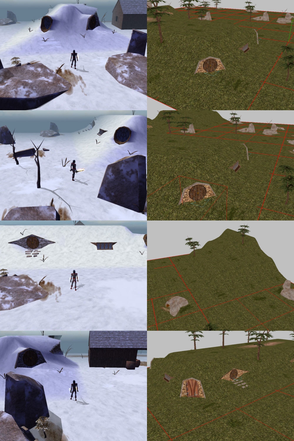 Great work, the desert has more life now we can add proper dunes... However the halfling doors dont seem to be textured, in my toolset and in game the doors appear as pure white. I can open them etc, they are just white...... Also one of the halfling corner doors doesnt show up at all.