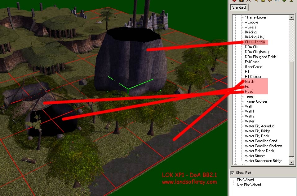 LOK Expansion One for the 2.1 Builder Base by Den of Assassins THis hak should be set to be the next higher priority above the Builder Base by DoA. It is compatible only with the 2.1 release and future releases will require this set to be updated with any new entries that Den makes of course. This hak adds the following terrains: Pit Road over Pit (bridges) Marsh Cliffs (original style)