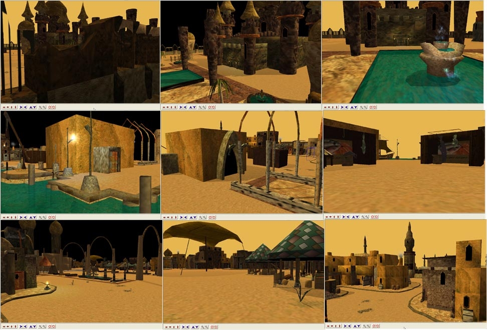 Its finally here, I have tested this extensively, but bugs always pop up, so if you discover one, please email me with the details. I will correct any that do rear their ugly heads. This tileset should add some extensive ambiance to any of your desert quests. Read the readme file, some Groups peek out the polys (there is one 7x7 Group of an Arabian Palace that should be used sparingly on slower machines/weaker grahpic cards). This tileset is being included in the Faerun Nights project at their site. Thanks goes out to their members for support. This tileset also looks great with Brandon's Camera Hak or the Camera Release option.