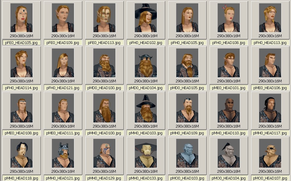 This Hak Pak contains 129 Head's Models. They're for all races and genders, but most of all are for Humans (M/F), Elves (M/F) and Dwarves (M). None of them was made by me! I've collected them from Internet, selected and gathered into the file! I can't tell you the names of the authors, because I've found them in mega-combo-haks. The only I know are: Ananku (some Dwarves), Nirijans (male Elves), Nathraiben Alvarhyn (male Elves), Arii. Usage: unzip the file into your 'hak' folder and add it to your modules. NOTE: I've added a folder with the files (jpg) of all the heads used, so you can view them without using the Aurora Toolset. All Heads-Numbers start from 100, and don't replace any Bioware ones.