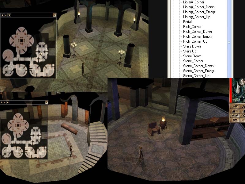 Have you ever noticed that traveling through the vast castles of NWN you encounter square room after square room after, well you get the idea. Velmar gave us a tower interior that broke that mold and this is merely an extension of that - round tiles for the castle tile set. Now you can create that tower in your castle and you are no longer hampered by square dining rooms. This hak pak includes twelve new tiles (and their map images) to add these circular beauties to your own humble abode. The tiles include a standard tile, an empty tile, stairs up and stairs down for each of the three major floor sets (rich, library, and stone). These have been designed as a feature set and as such no corridors can enter them. All tiles use standard Bioware textures. This is an add-on for the castle tileset and includes a modified .set and .itp file for the castle tileset.