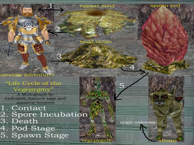 Vegepygmy Pak, say it really fast 5 times. What's included: - Vegepygmy Model with 4 blueprints (Vegepygmy, Bodyguard, Sub Chief, and Chief)- Thorny Model and blueprint - Thorny Riders, scripts, and blueprints - Vegepygmy and Thorny Properties Skins and Items - Vegepygmy Short Spear - Lrg, Small and Wall russett mold placeables with scripts - Usable Spawn Pod placeable and scripts - Mold Victim Placeable - 'Russett Mold Spores' disease script - Mold spores emitter - various scripts for triggers, etc. - Other things I probably forgot about :)