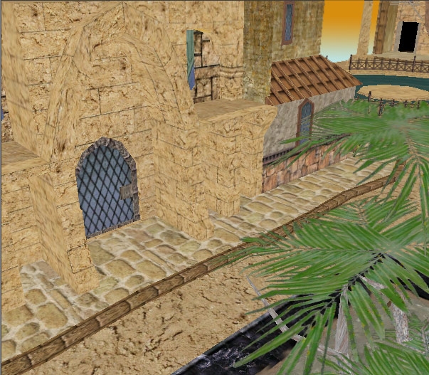1) The black and grey around the larger house tiles. They look odd and out of place when you place them in a city. Perhaps it's too much contrast in a setting that should have that much contrast. It's a desert city...over time pretty much everything is going to be sand colored.
