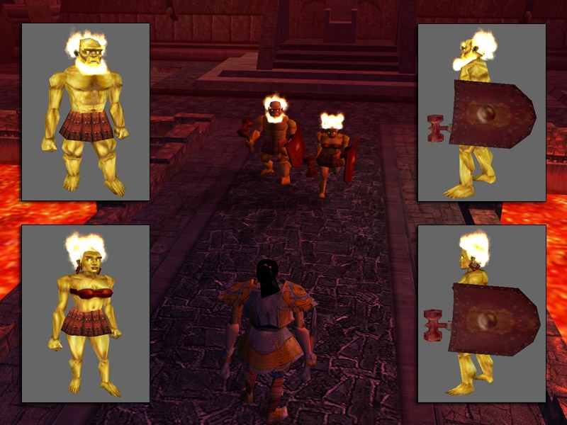 Adds a male and female Azer to the game along with their weapons. Azers are dwarves native to the Elemental Plane of Fire. They have metallic, brass-colored skin, and flames lick their heads where a normal dwarf would have hair and a beard. They wear kilts of brass, bronze, or copper. Click on the readme link for more information.