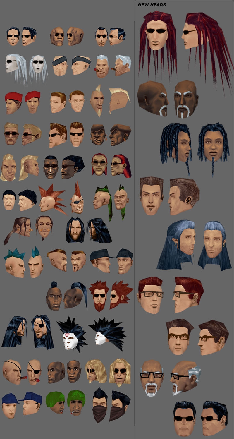 Versions without sunglasses of most of the heads would be really appreciated. Some of the heads are great but cant be used in a non-modern setting due to sunglasses, cigs and hats.