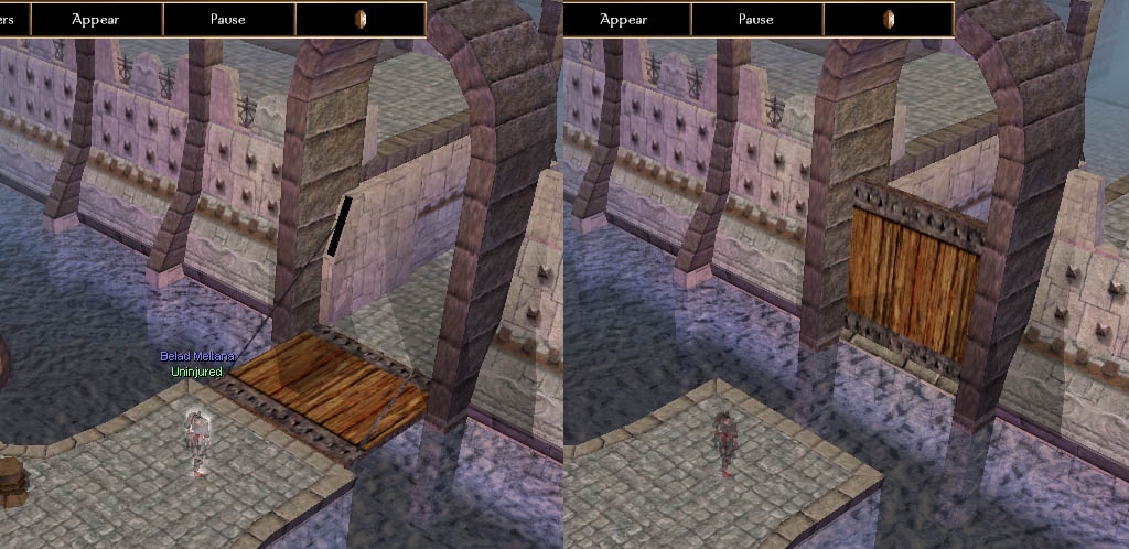 I just have one suggestion : could you make it so that the drawbridge does not fade out when the player moves the camera around ? IMHO, it doesn't make sense to be able to see through it.