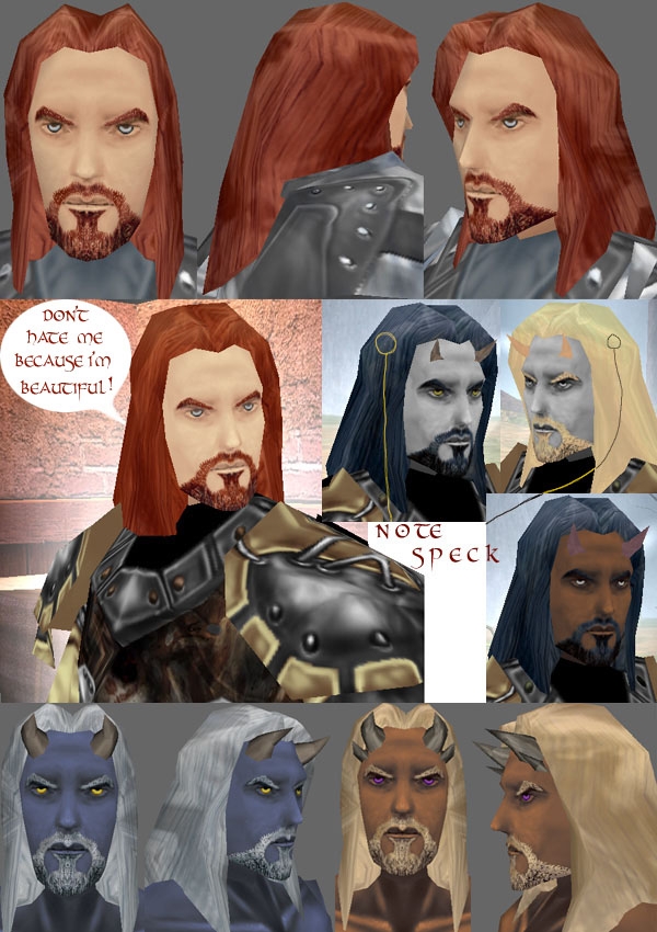 Yes! More long haired guys! I for one don't mind a little clipping if I can finally play chars with decent long hair :p This one is a good start though :) Hmm...and some younger looking heads are needed too. It feels wrong to set out with a lvl 1 char who looks like he's in his mid 30's. And the default age on the char making screen says 18, so why did they make all these mature looking male heads? Shouldn't they have included a couple of young lads too? *looks pleadingly at Dave*"Light travels faster than sound, that's why some people appear bright until you hear them speak"