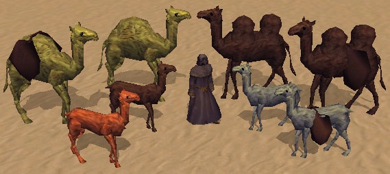 Update 3/31/04: Tweaked all the models head and added better humps and tails to the camles. Also added a better texture. Plus it now has portraits of dromedary camel, bactrian camel and llama. AND pack camels and llama added too.