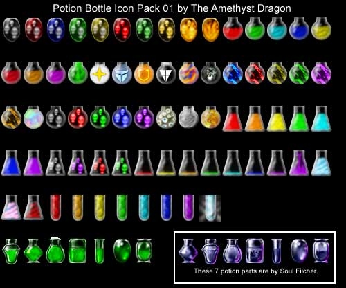 Rogues, the connoisseurs of fine potions, are one class that really appreciate a wide selection of well brewed potion. Amethyst Dragon's potion pack provides the selection, color, and bottle shape of fine potions that entices Rogues to even become purveyors of them. _________________________ Your Character is your Destiny.