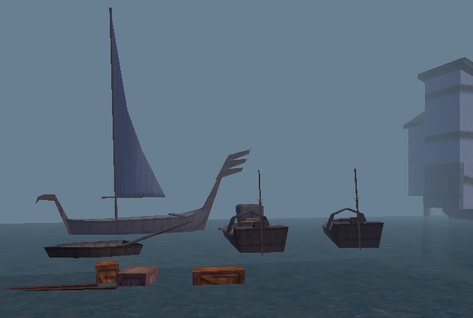 load up an exterior city area and paint down an "L" shaped water area. there are two tiles i remodeled (b02_04 and b04_02); one has a boat floating along the shoreline (the tile has half land, half water), and the other has two boats on either side of a corner of shoreline (the tile is three-quarters water, look at the inside corner of the "L"). these are the boats, now floating in open water instead of next to the shore.