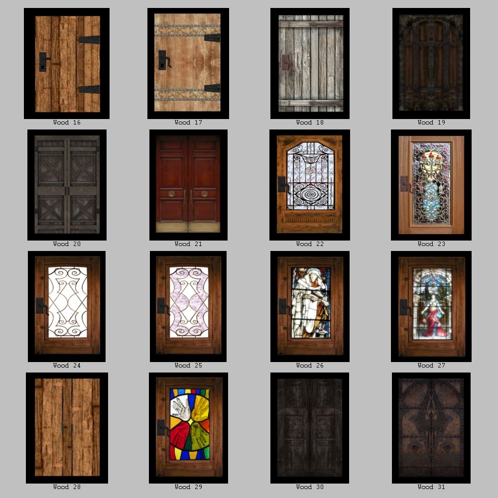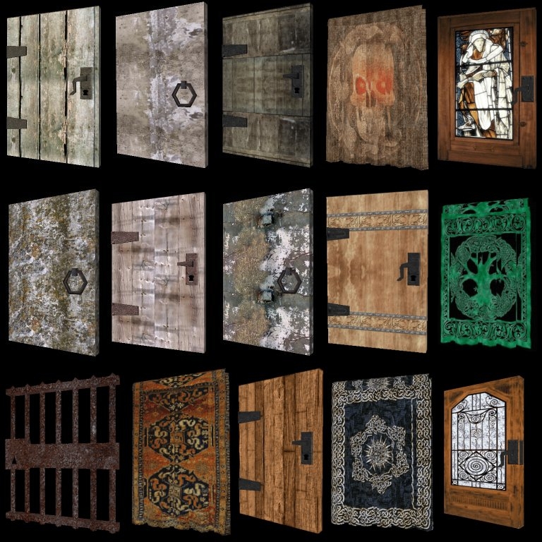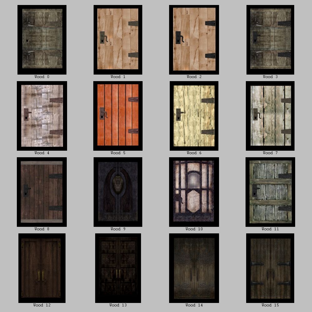 v4.0 - Added 18 curtain doors, 5 metal doors, 24 stone doors, and 16 wood doors. HOTU 1.68 patch compliance. Added vertically operating stone doors. Enhancement of several textures. Reorientation of several curtain textures to better fit the curtain. Corrected texture map for several wood doors. Removal of door specific portraits.