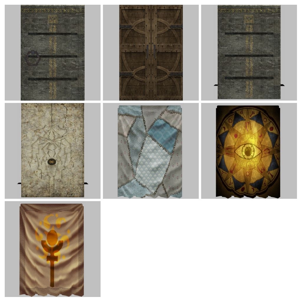 * New doors (3 curtains, 1 wood door, 1 stone door, 2 vertical stone doors)