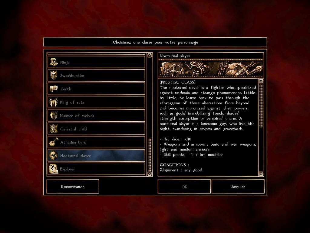 This hak contains the code modifications for 32 new races (11 of them playables : drow, sea elf, aasimar, tiefling, githzerai, githyanki, air genasi, earth genasi, fire genasi, water genasi, khaasta) and 9 prestiges classes (athasian bard, nocturnal slayer, celestial child, explorer, swashbuckler, master of wolves, ninja, king of rats, Zerth). See the 'read me' file for complete informations.