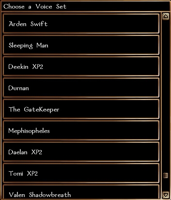 Title NPC Soundset Author Reggie Big Monkey Submitted / Updated 05-21-2005 / 07-09-2005 Category Voicesets Expansions HOTU-1.66 Description Override file (soundset.2da) to have access to all NPC voices (male and female, beasts and creatures, any race) while creating a character.