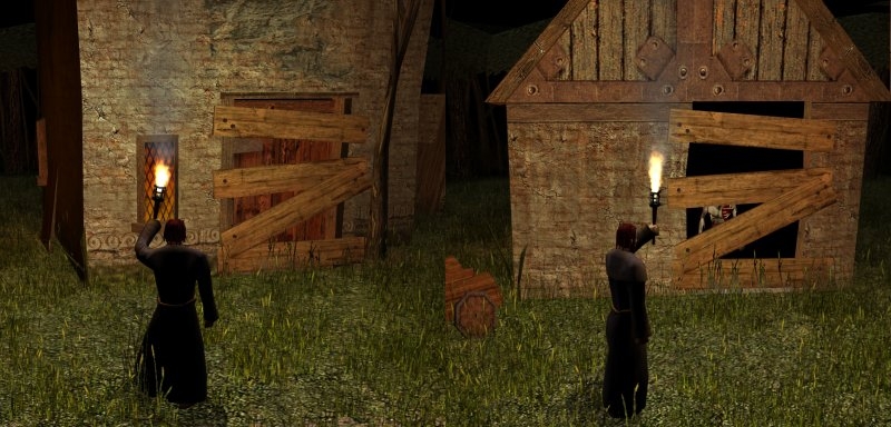 The one place these boards wont look right is on metal gates. I suppose it might be a bit finicky to do but the best barring placeable for them would be a load of chains and padlocks. Would certainly be a gothic treat to have to smash through some rusty old chains and seized-up padlocks to get past that crypt gate... These placeables recognise the tactical value of doors in NWNs, that sometimes a DM will wish to bar them but that players should be given the option of keeping a door intact for use as a barrier against monsters. It also allows you to bar doors that you otherwise wish to remain indestructible.