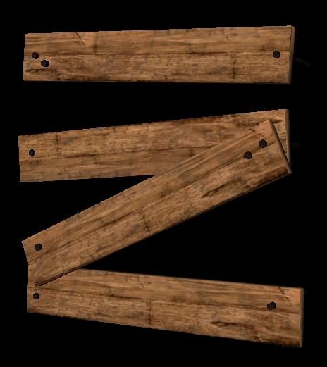 1.1 Changed model to prevent manipulation of objects behind the boarded placeable (mainly doors). Attacks are still allowed for creatures behind the placeable. All placeables have textures on the back. Nails were shortened and changed to a spike instead of a rod shape.