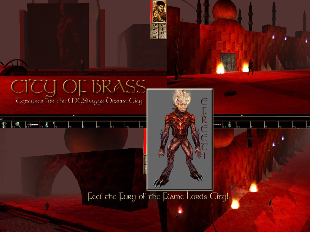 This is a retexture hak pak for My original Desert City tileset and DCAddon1 hak paks. This will present you with the fables Flame Lord's City of Brass. Please read the readme.txt file included in the .rar file. You will need winrar to decompress this file.