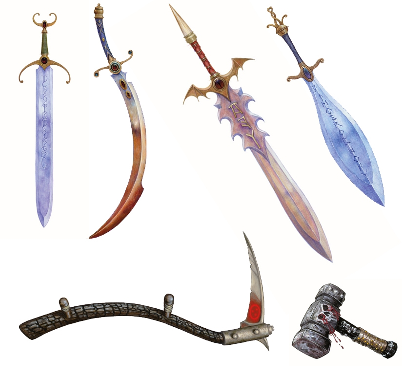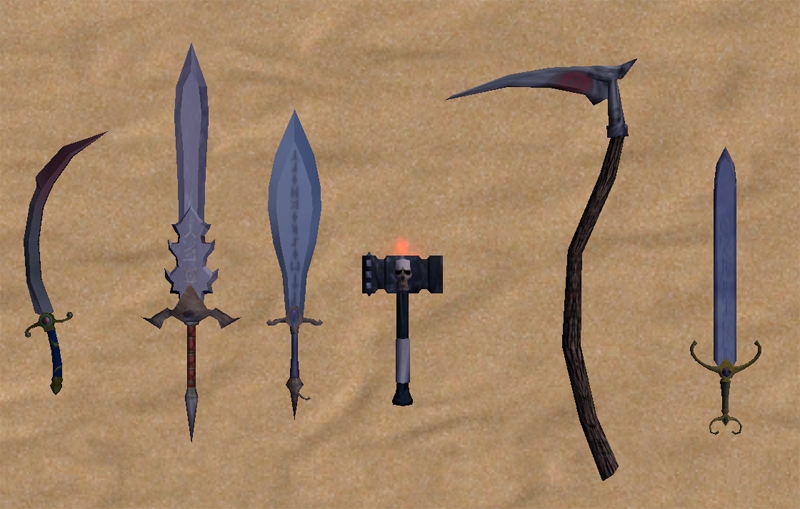 Very nice collection! I would make only one suggestion: make the handle for the scythe a bit thinner. Its current size just doesn't look right when wielded, since its diameter is bigger than the wielder's fist.